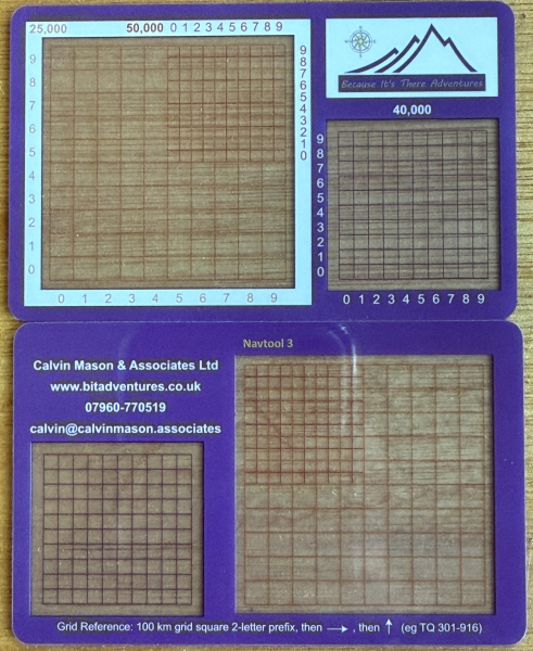 Navtool 3: Transparent windows to measure accurate grid references in 3 scales (1:25,000; 1:40,000 & 1:50,000).